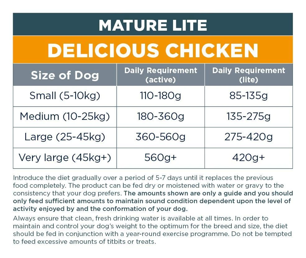 Autarky Adult Mature Light Delicious Chicken Dry Dog Food contains a moderate calorie content to prevent unessary weight gain in older dogs (7+). Autarky Mature Ligh includes a host of beneficial ingredients to allow working dogs to continue enjoying life to the full. It combines tasty chicken. herbs and vegetables in a recipie including optimum nutrients to support immune functions and coat condition. There is also added Glucosamine also support joint health.