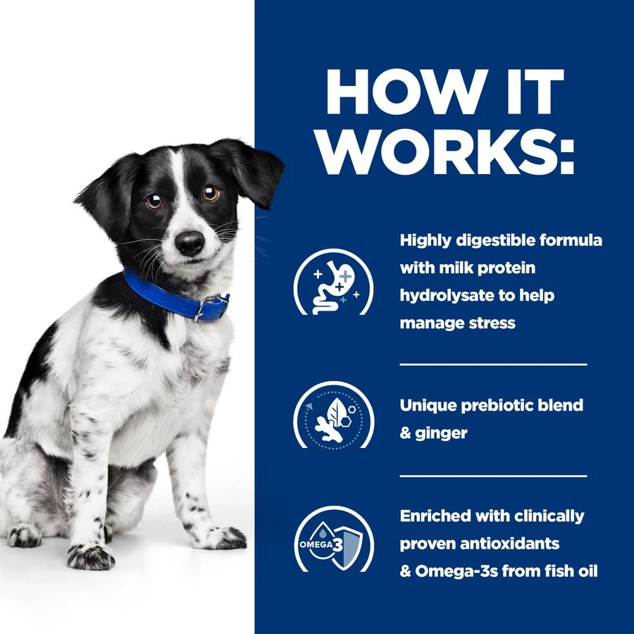 Hill’s Prescription DietTM i/dTM Stress Canine Mini is specially formulated to help address stress-related digestive upset in dogs < 14kg.