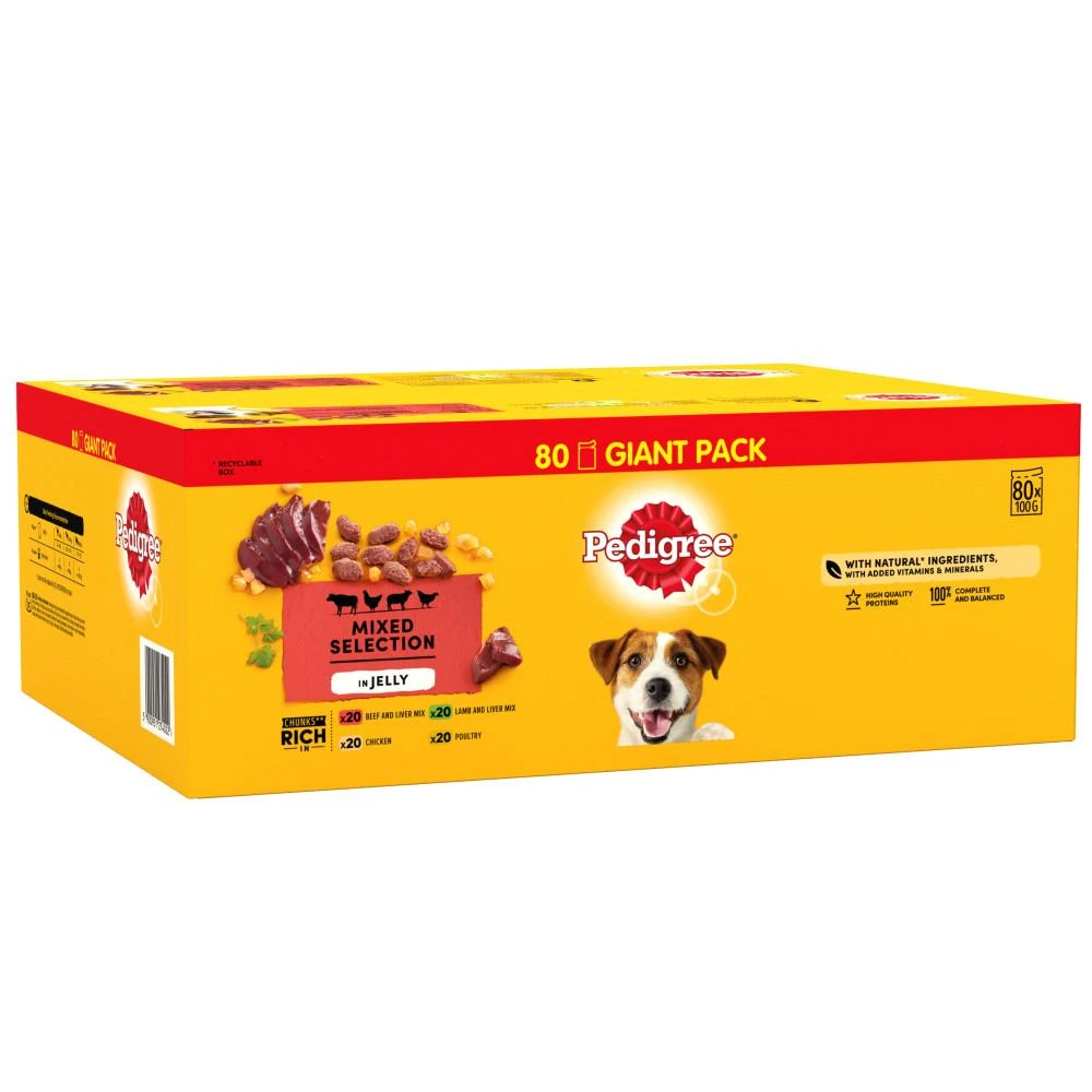 Pedigree Adult Mixed Selection in Jelly Wet Dog Food Pouches – 80 x 100g Description & Review
