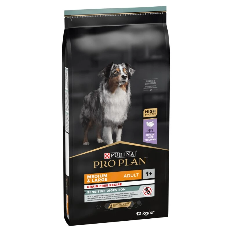 PRO PLAN Medium & Large Adult Dry Dog Food Sensitive Digestion Grain Free Formula Rich in Turkey – 12kg Description & Review