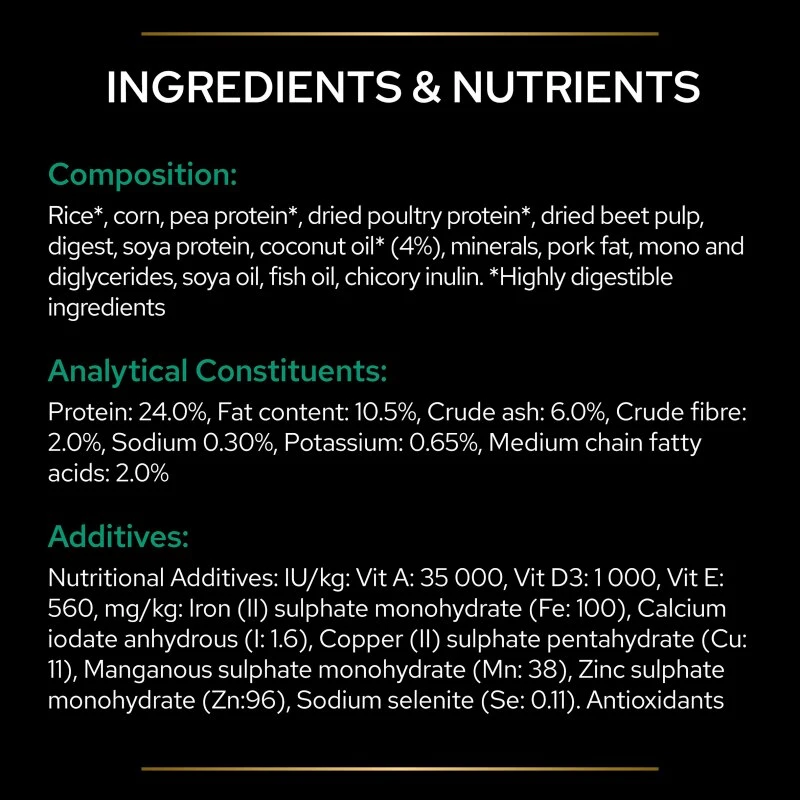 - Complete dietetic pet food for puppies and adult dogs, highly digestible, low fibre formulation for compensation for maldigestion and exocrine pancreatic insufficiency.