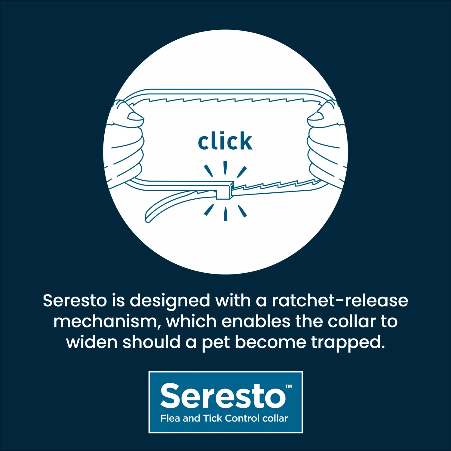 Seresto is designed with a safety release mechanism. In the unlikely event your dog becomes trapped, its own strength is sufficient to widen the collar and allow for a quick release. Seresto collars for small dogs are also equipped with a predetermined breaking point, so a harder pull will trigger the breaking of the collar.